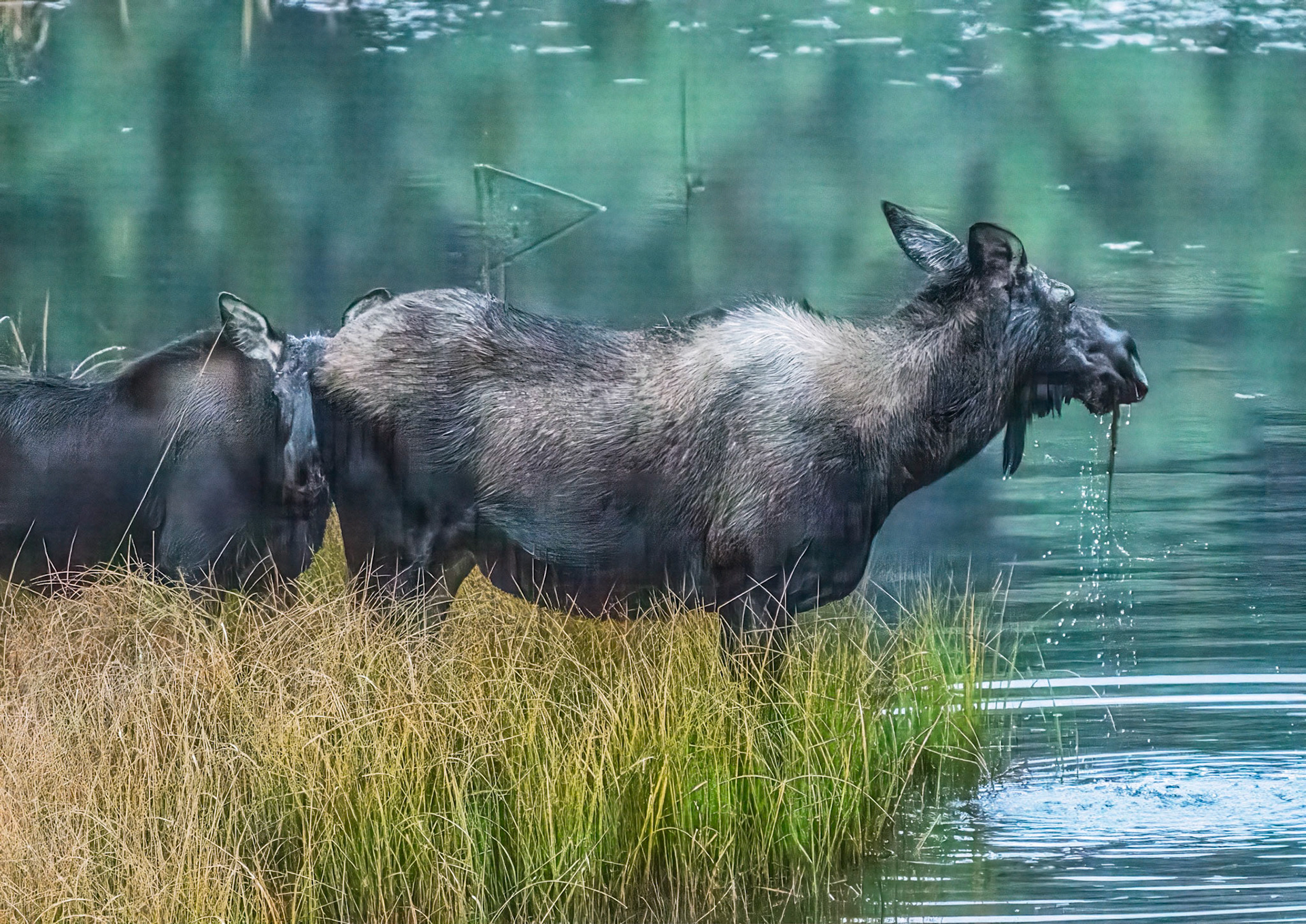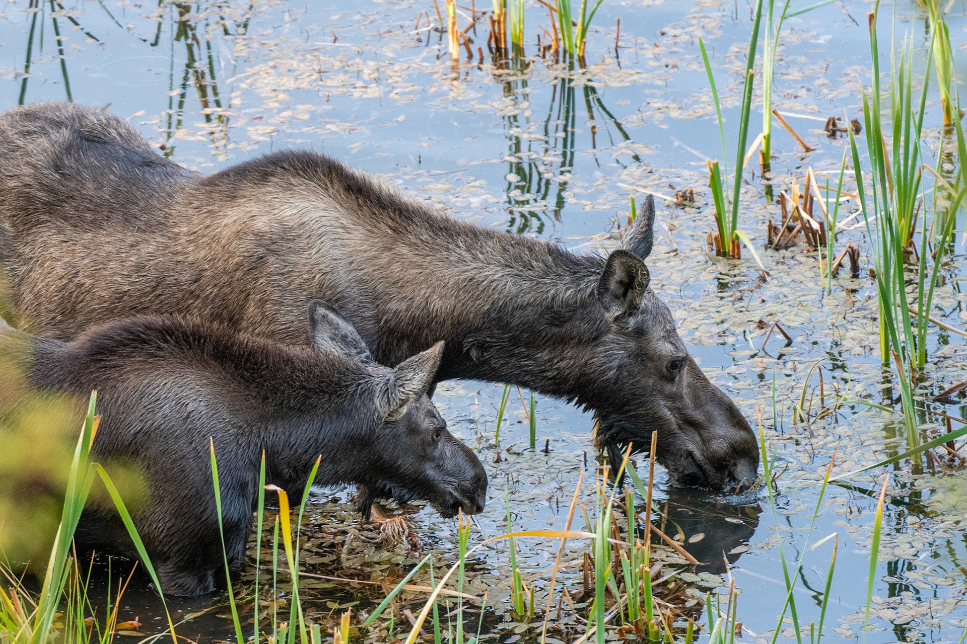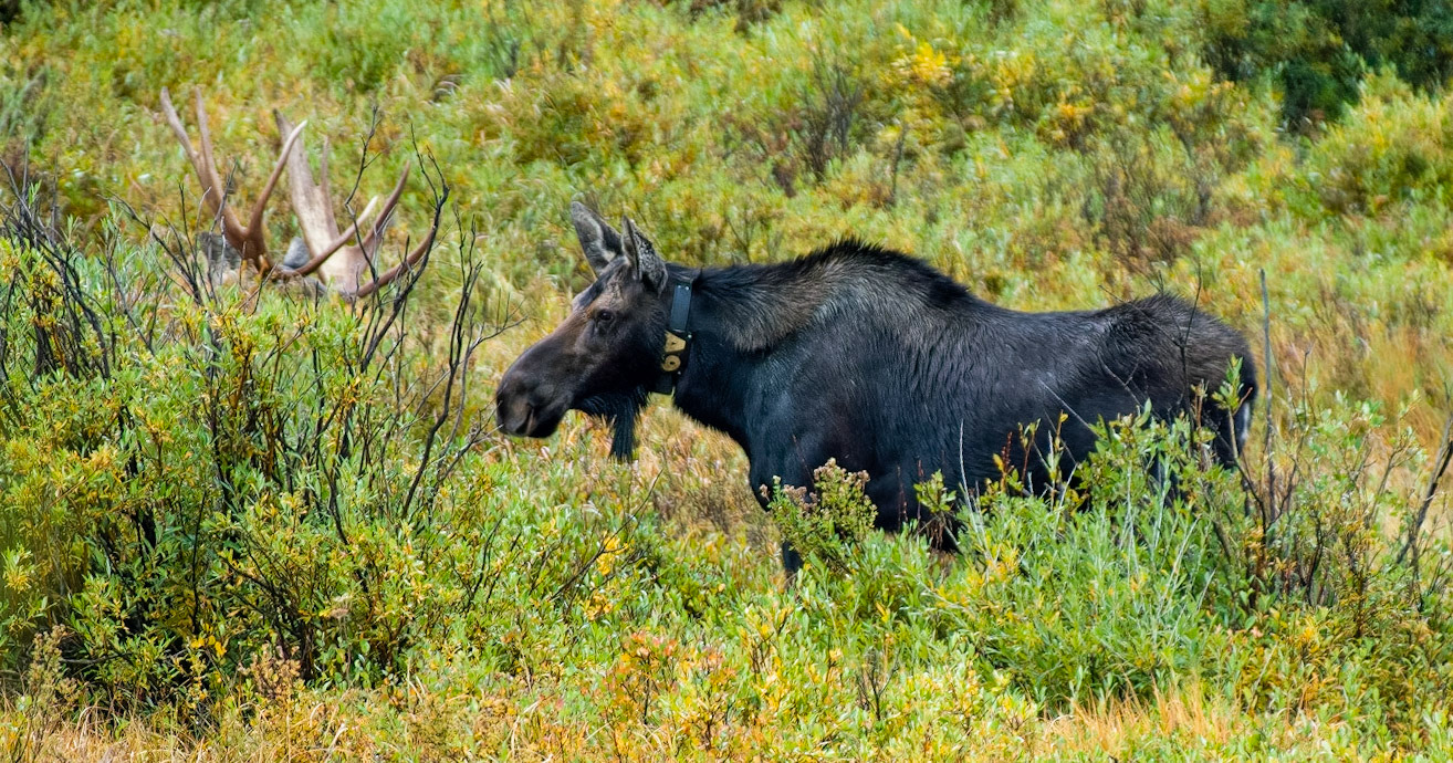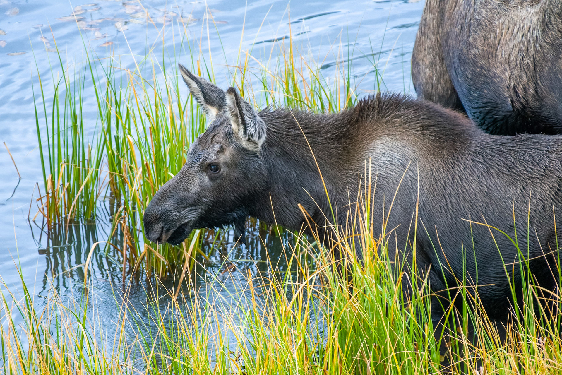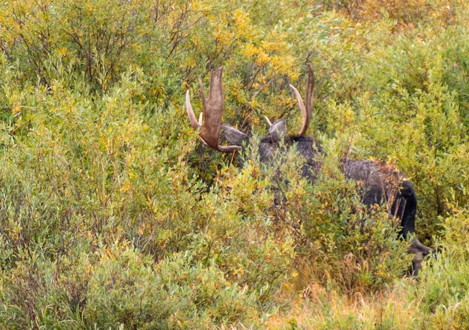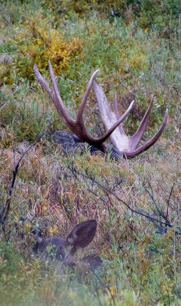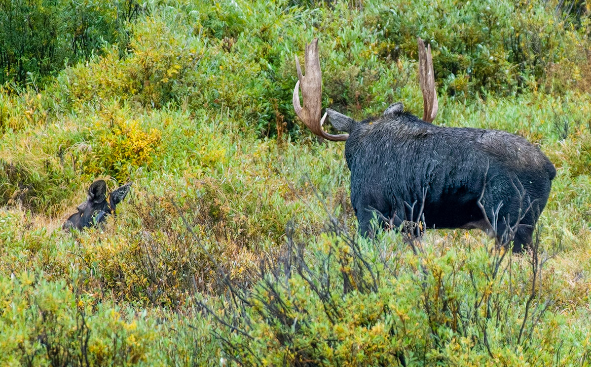 Mama Moose with junior at Sheep Lakes