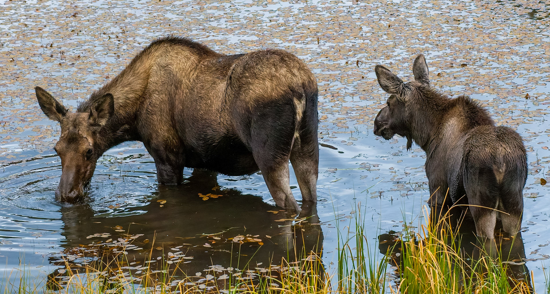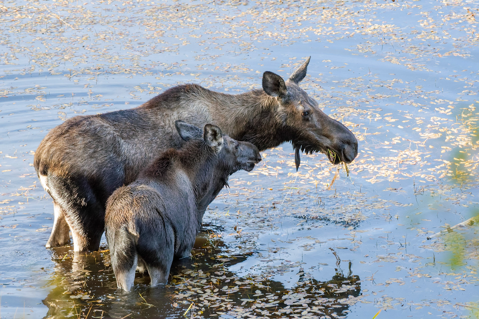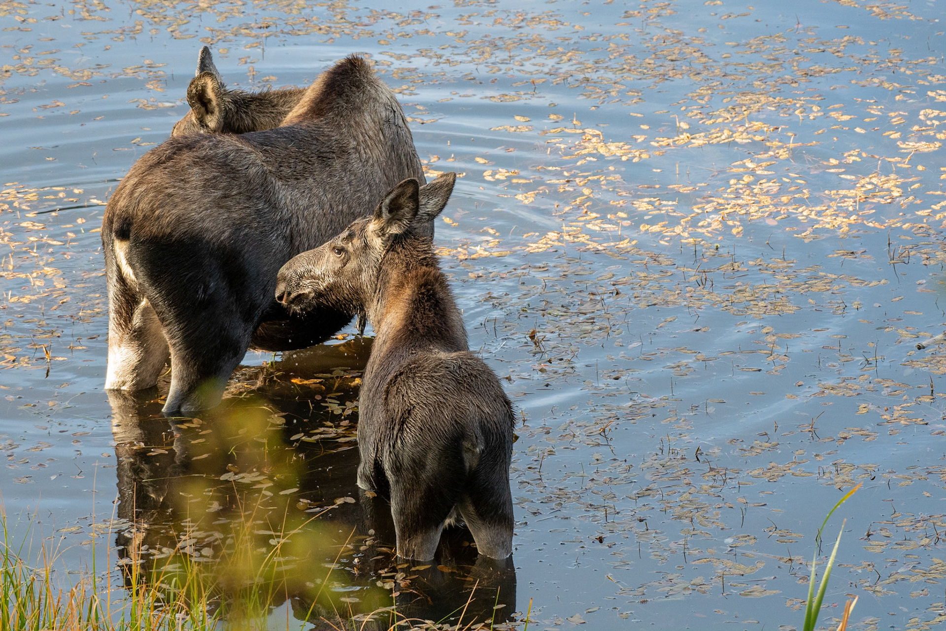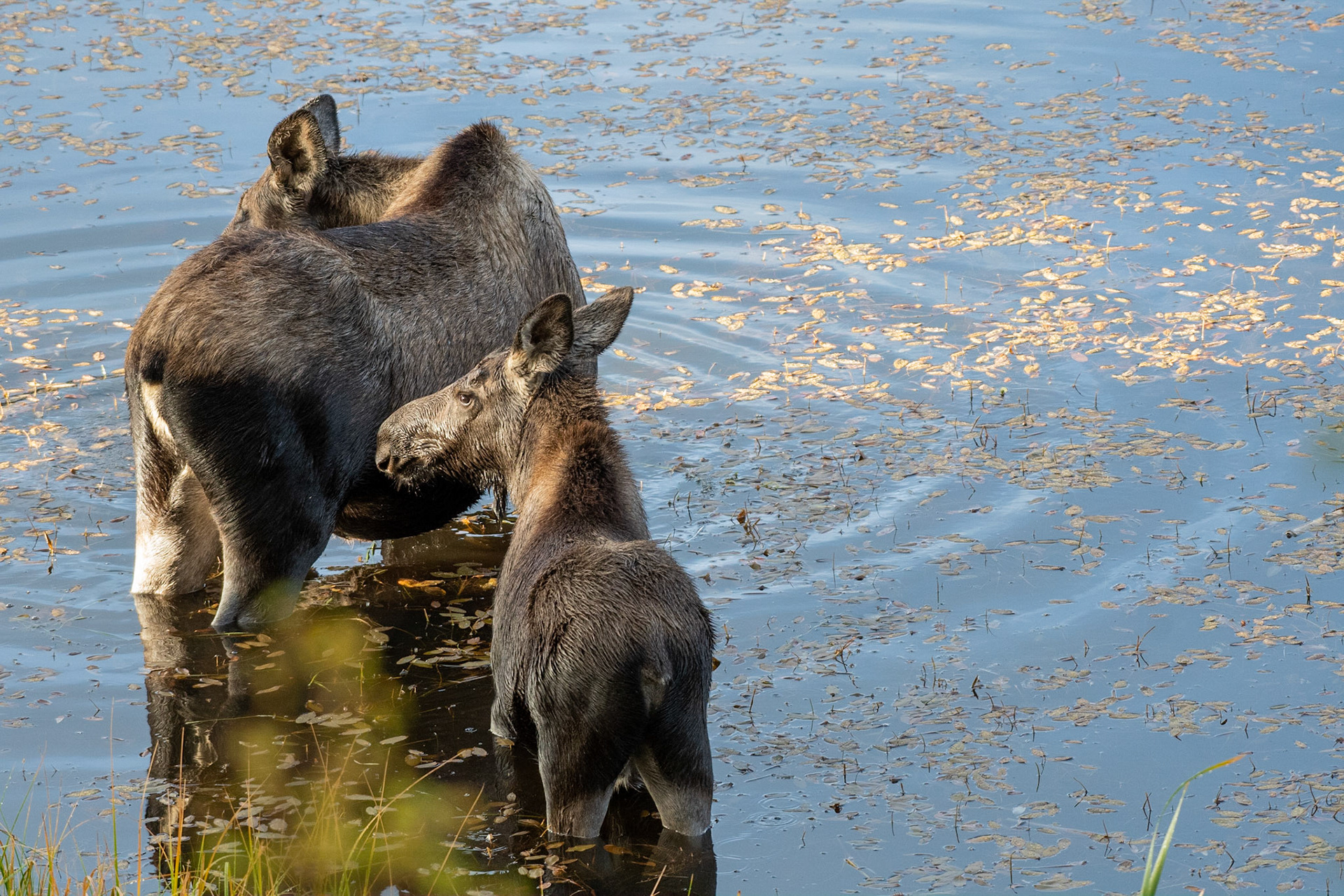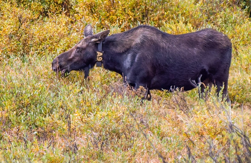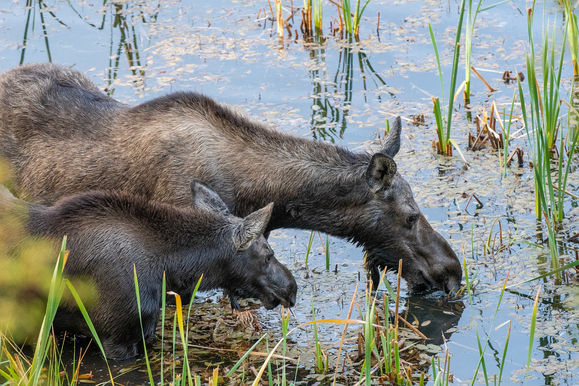 Mama Moose with junior at Sheep Lakes
