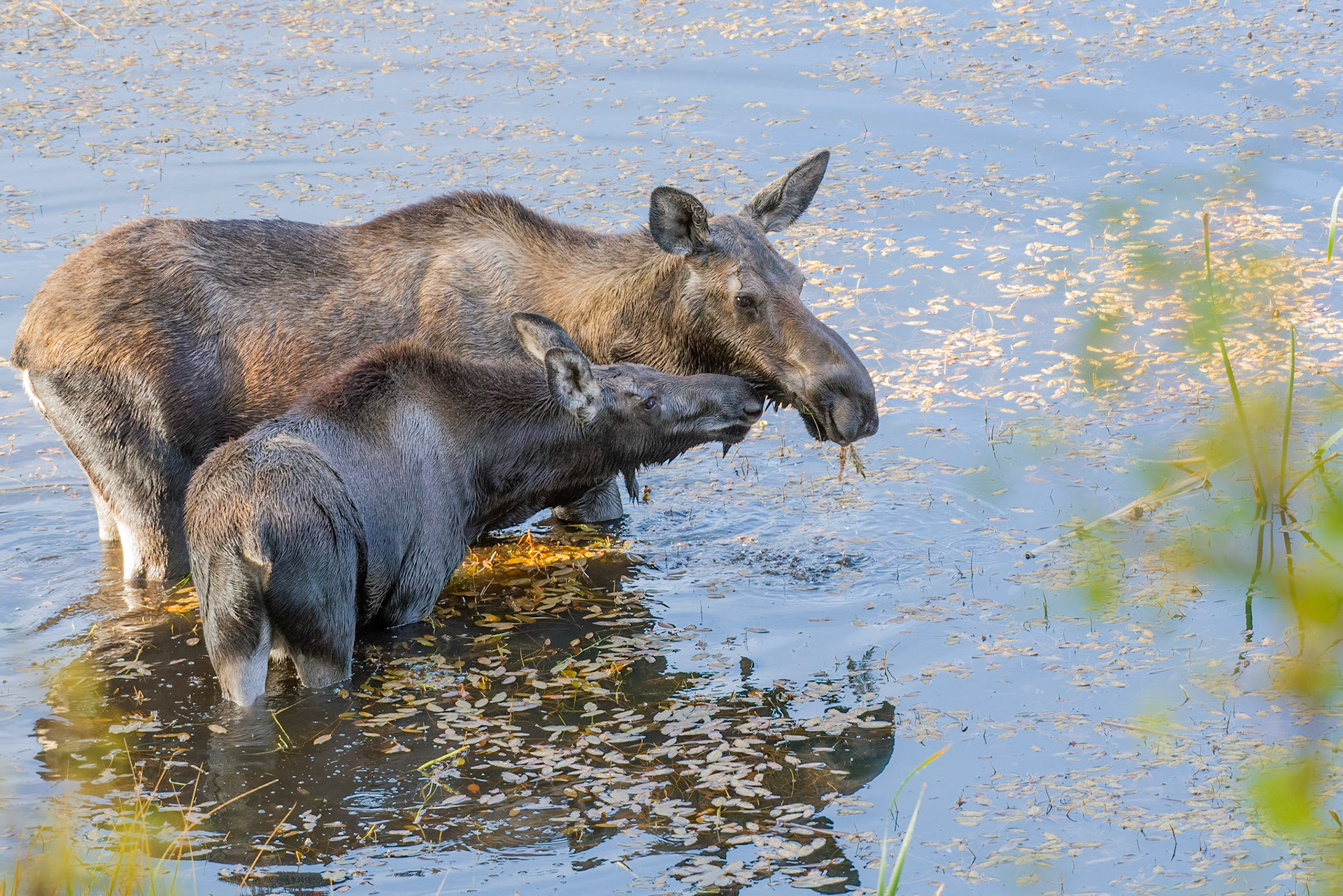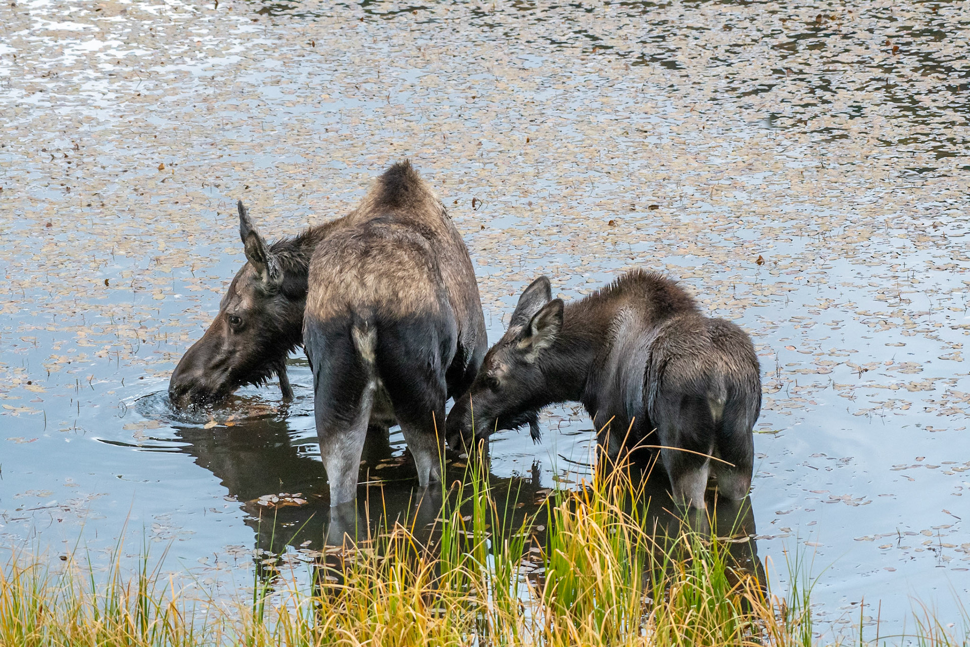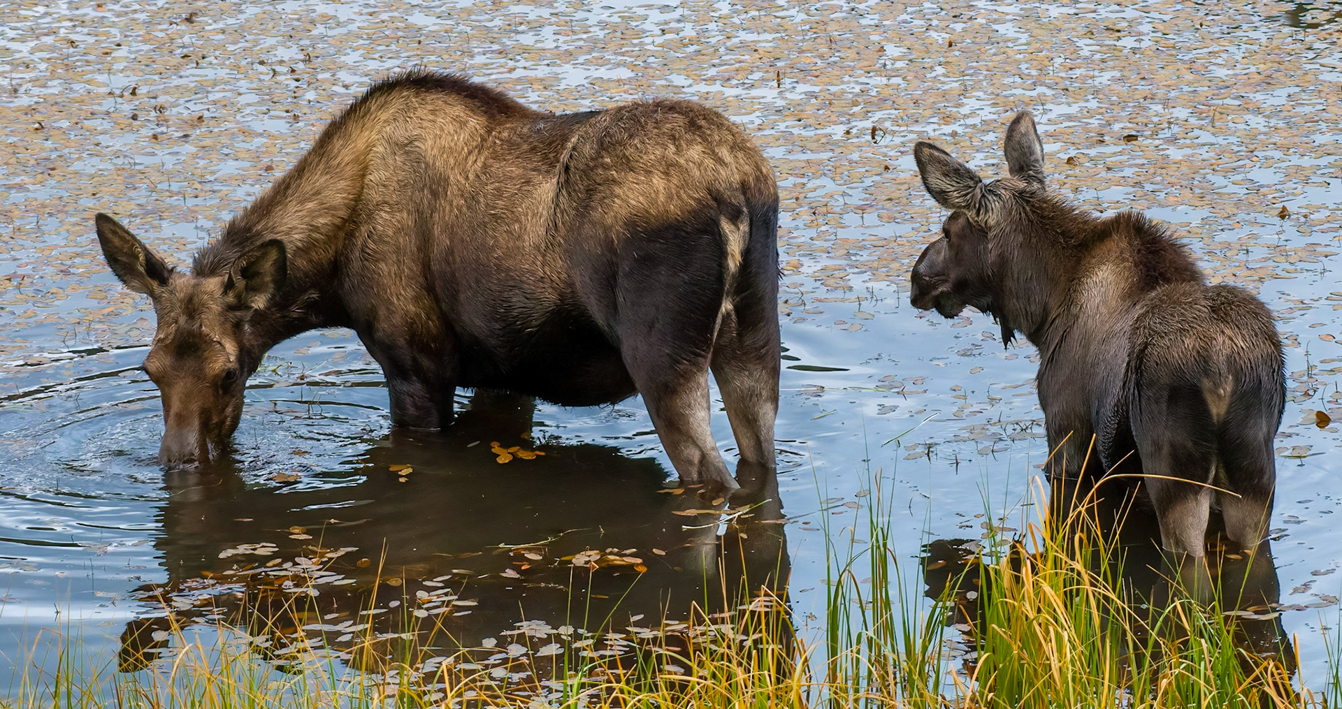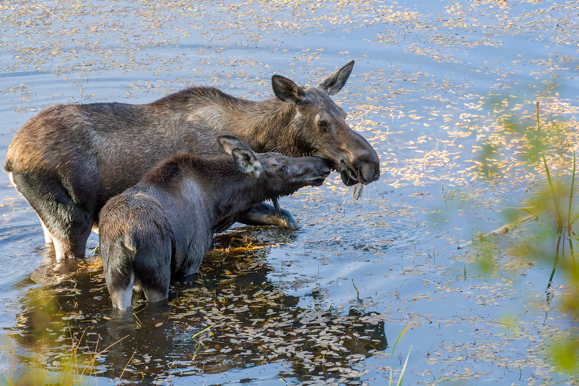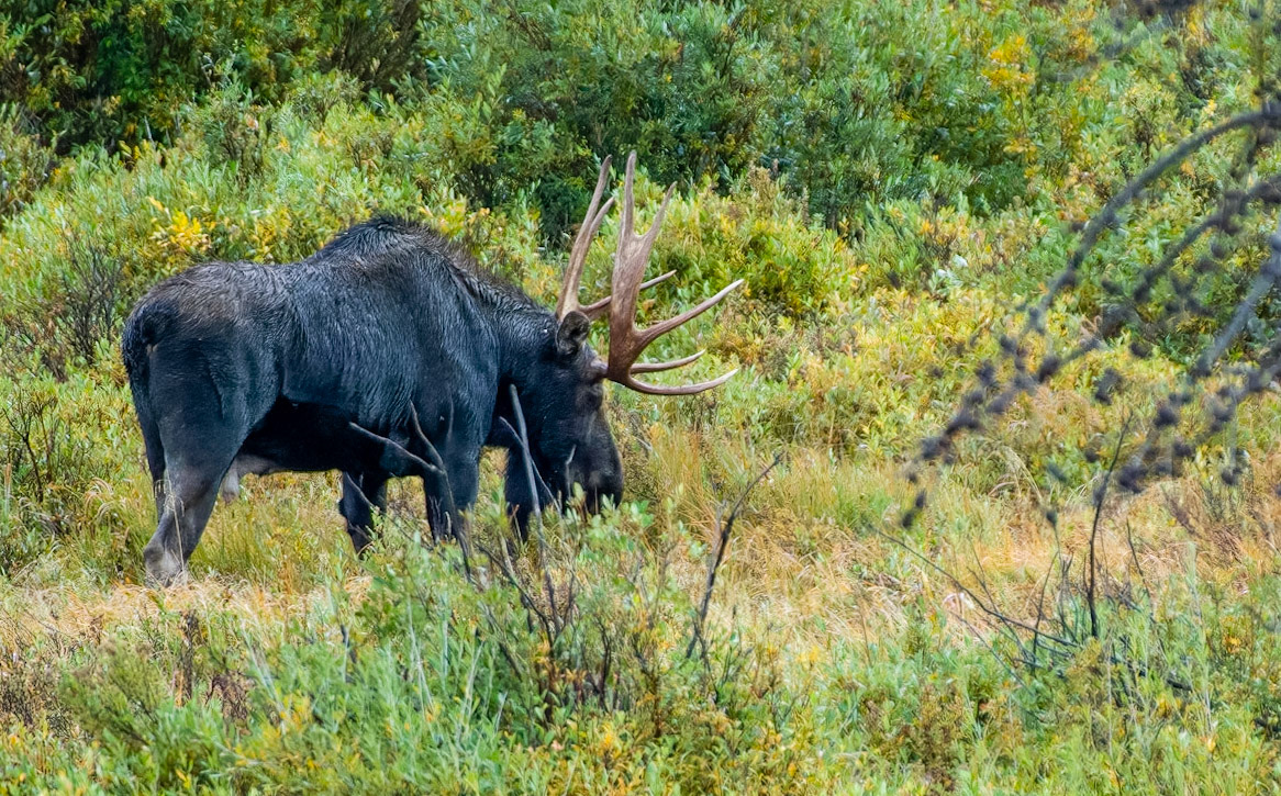 Mama Moose with junior at Sheep Lakes