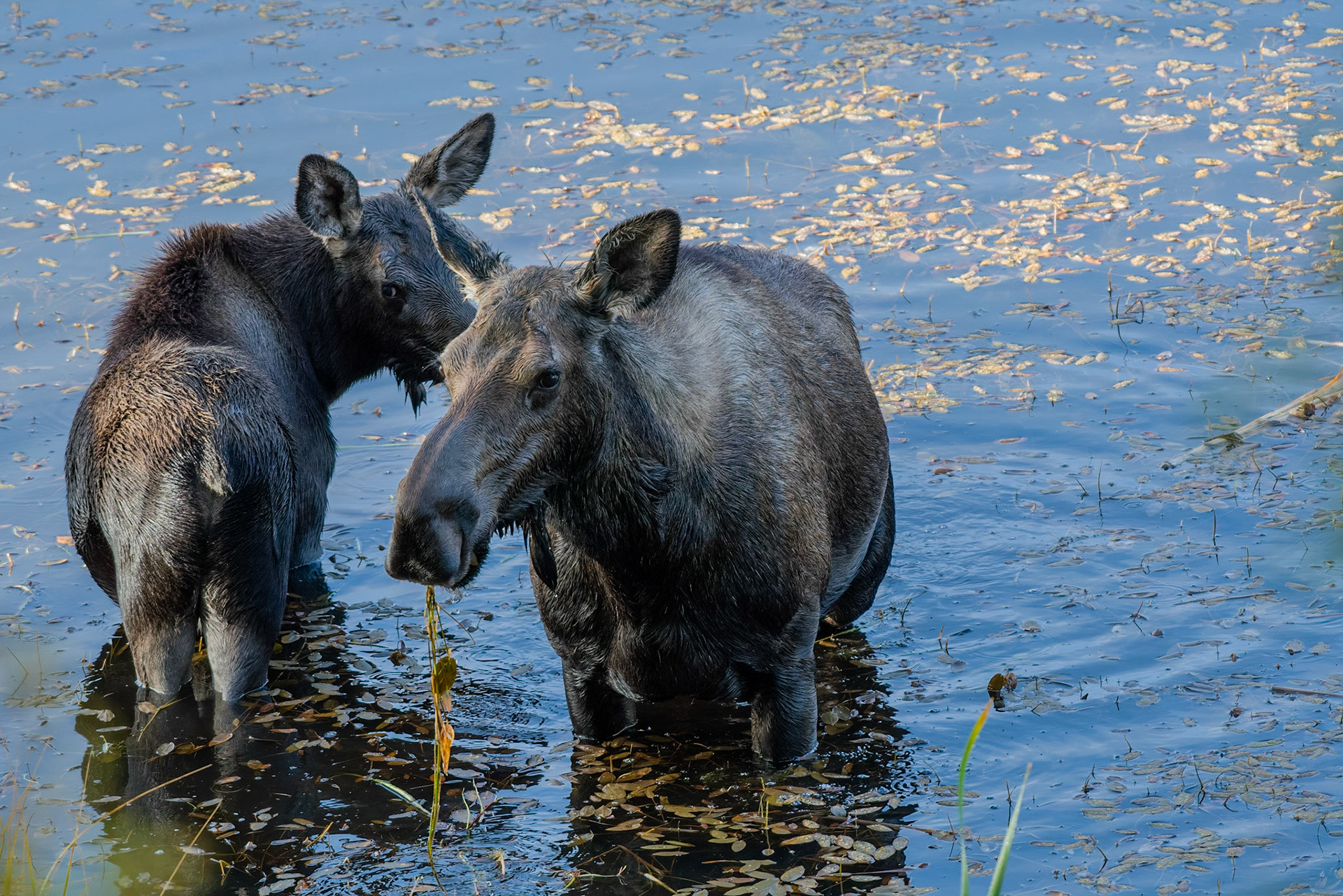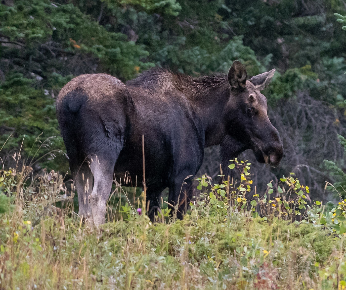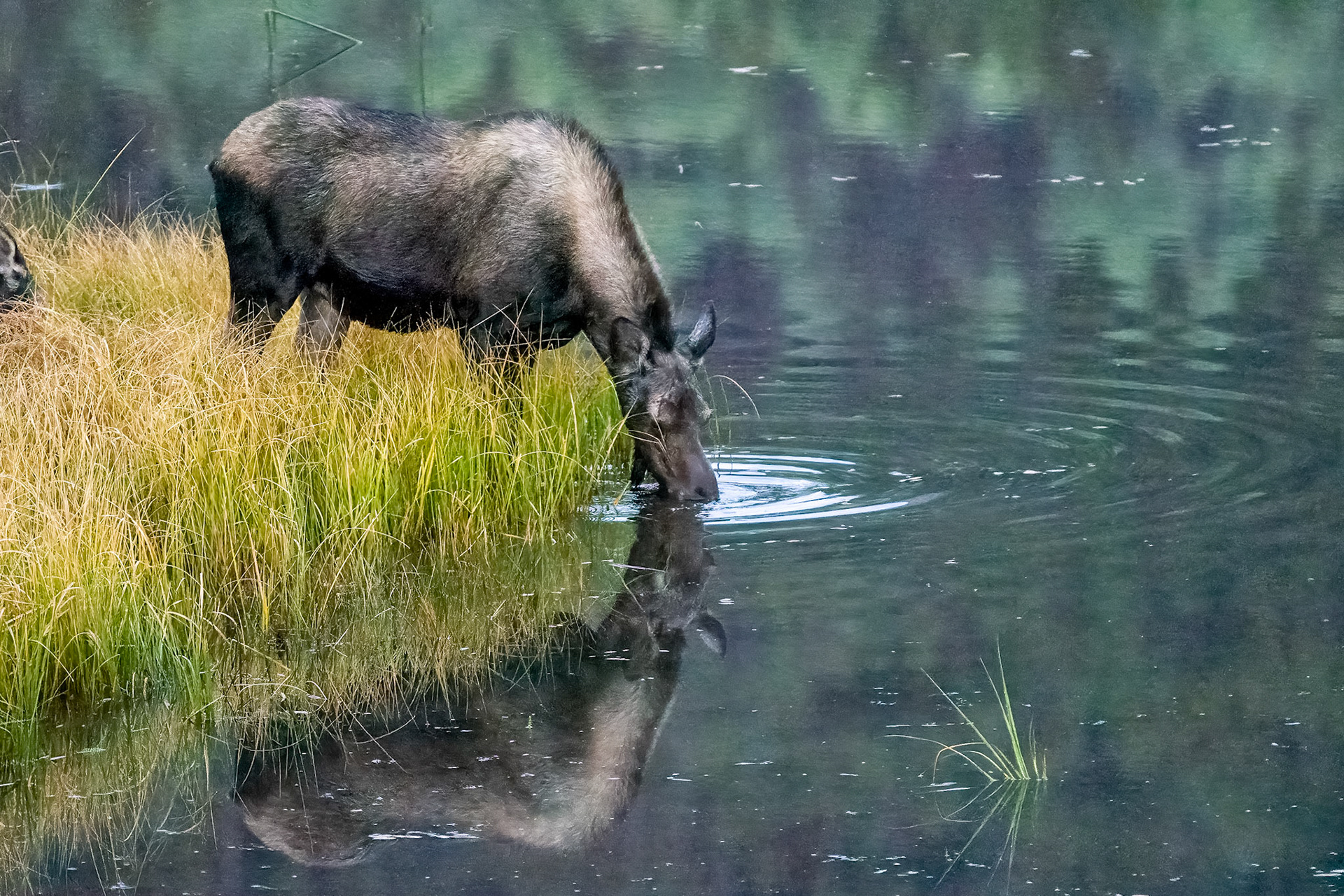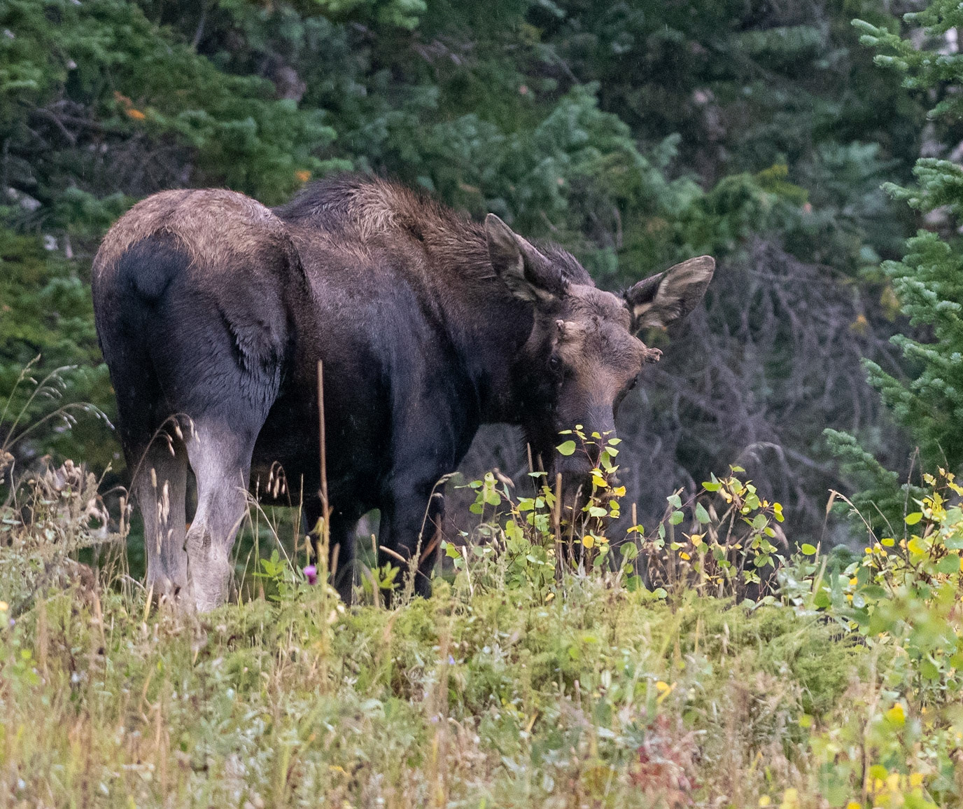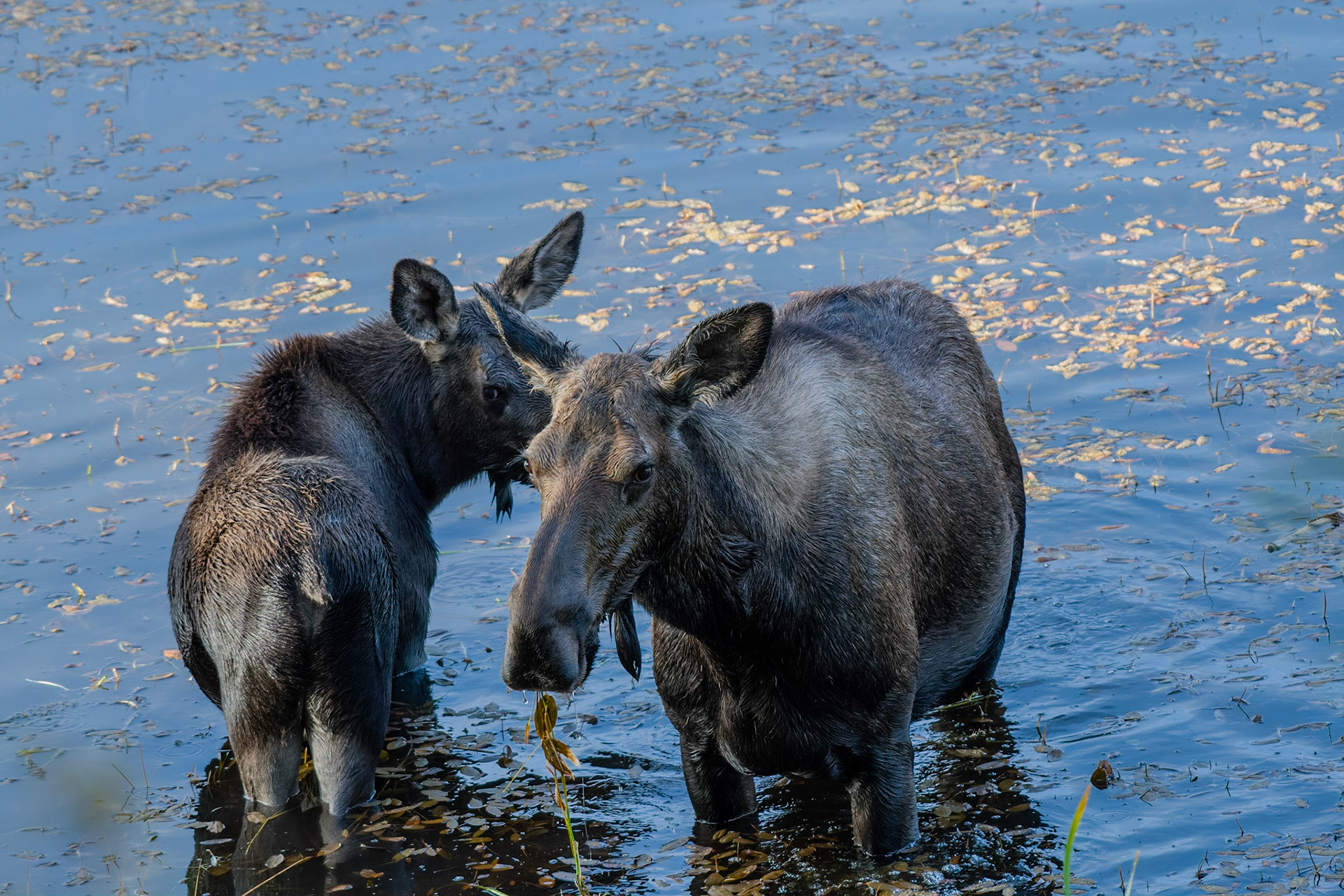 Mama Moose with junior at Sheep Lakes
