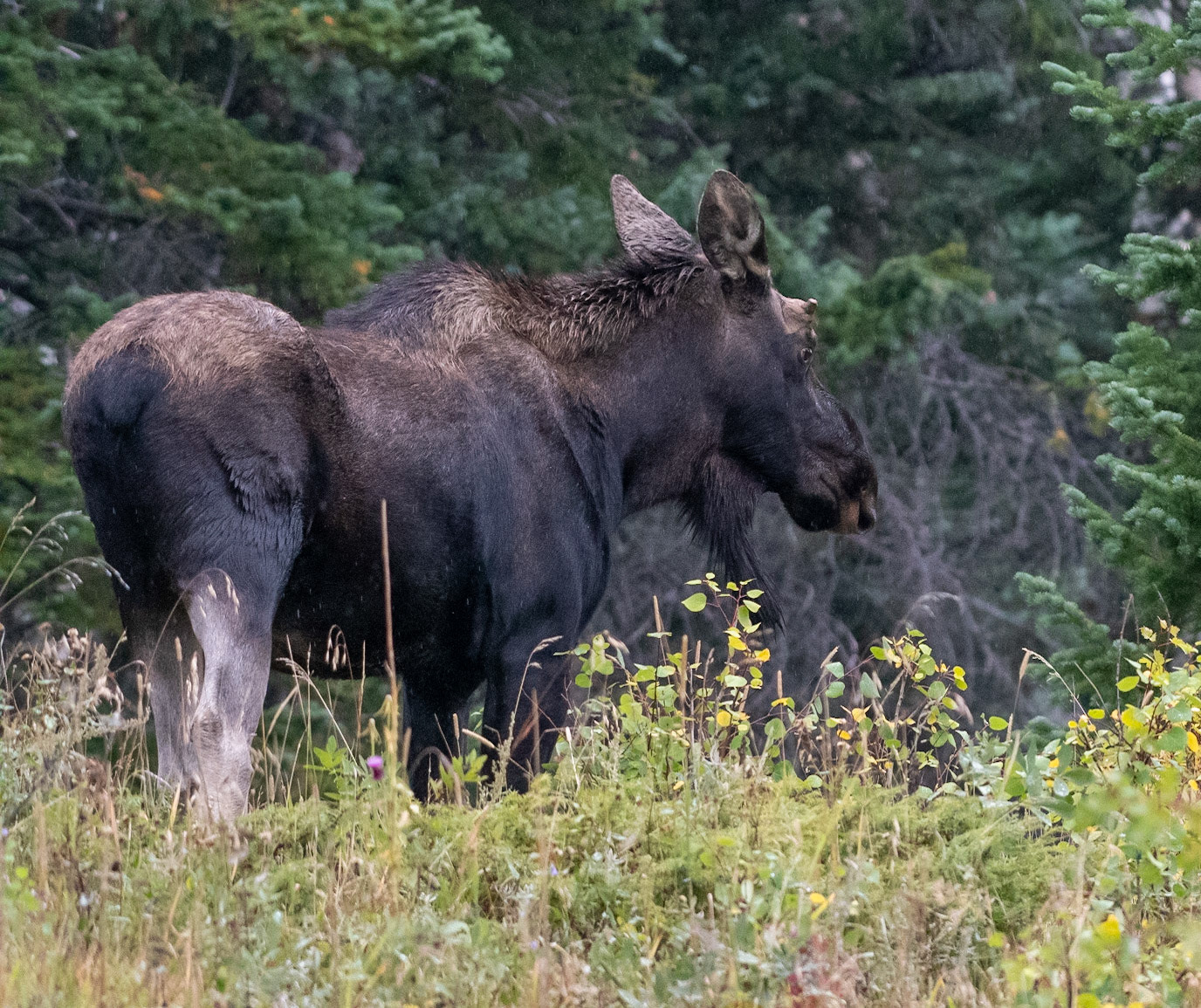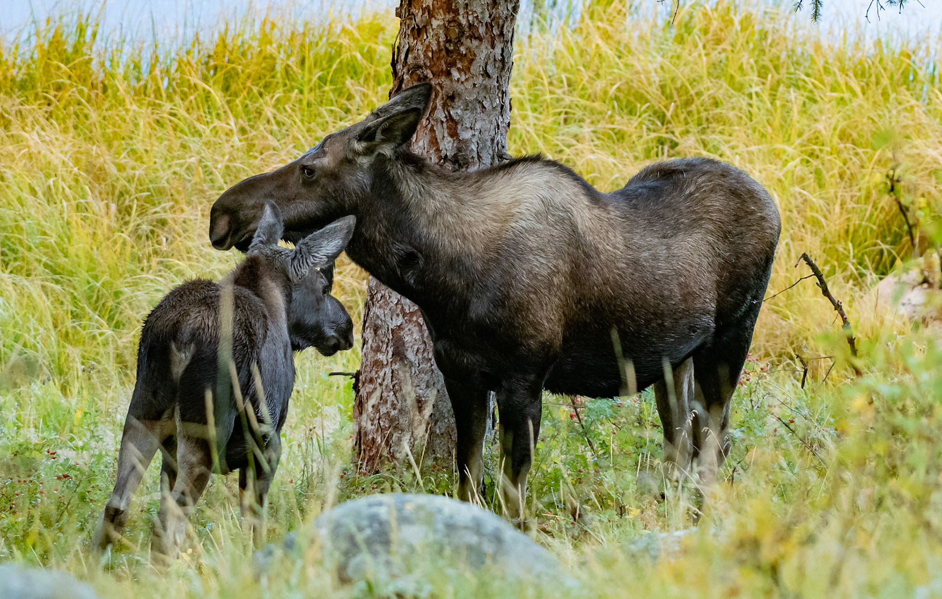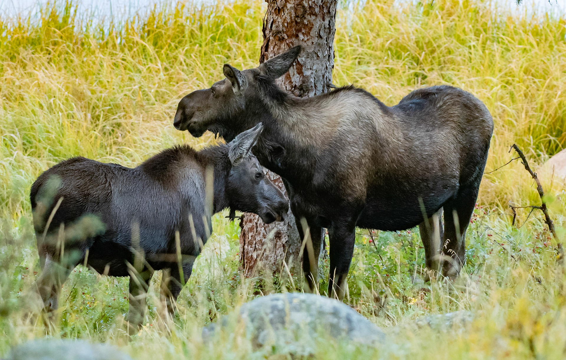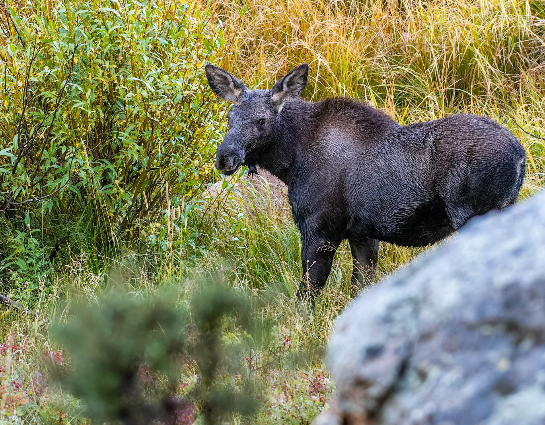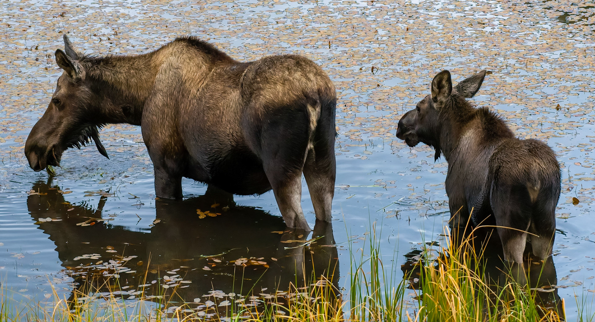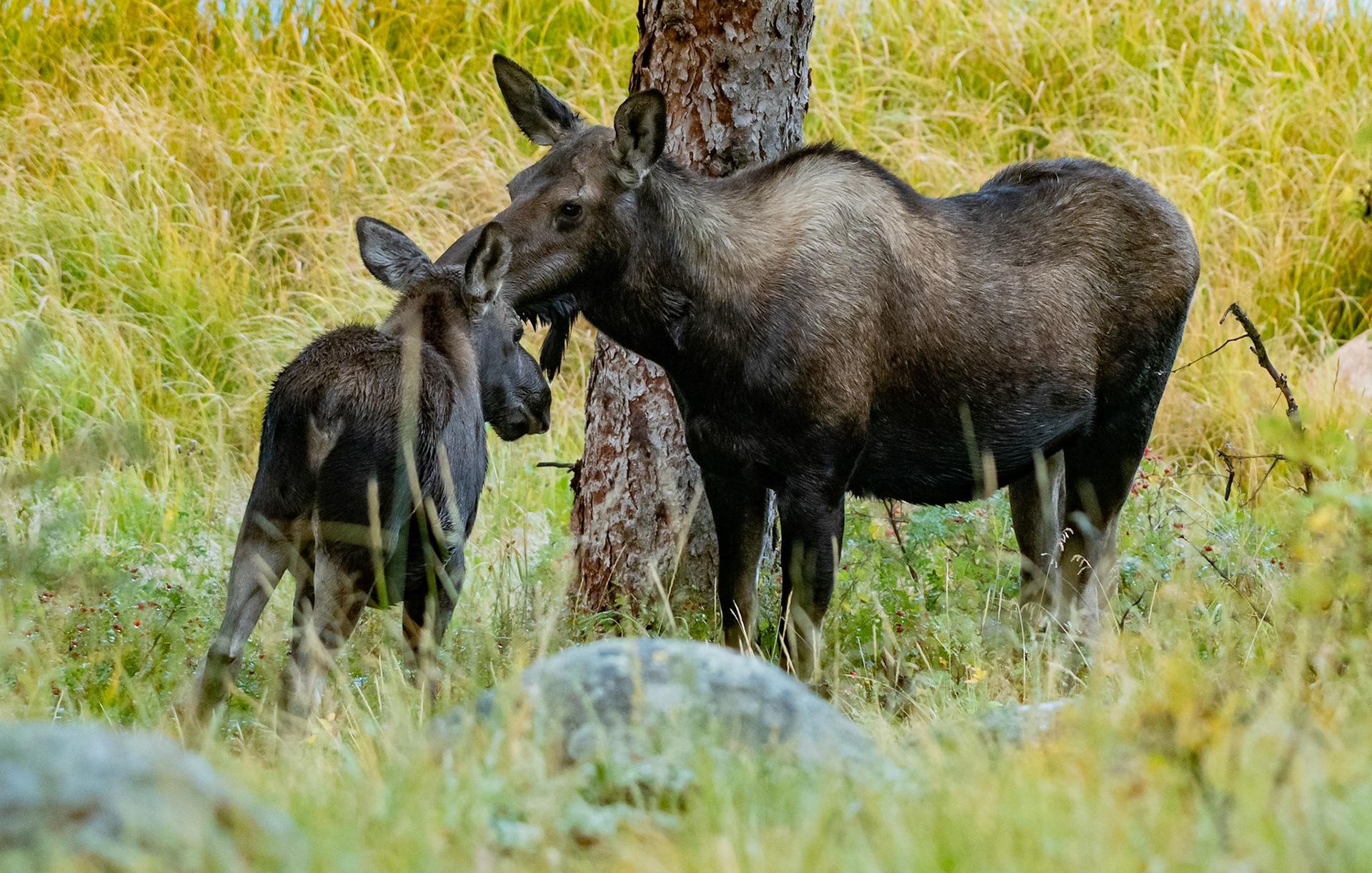 Mama Moose with junior at Sheep Lakes