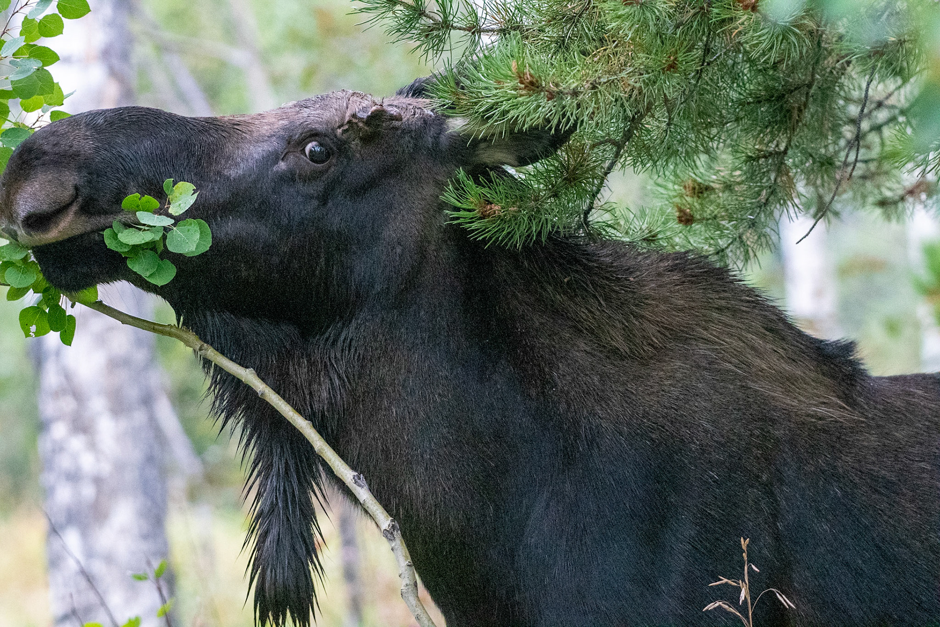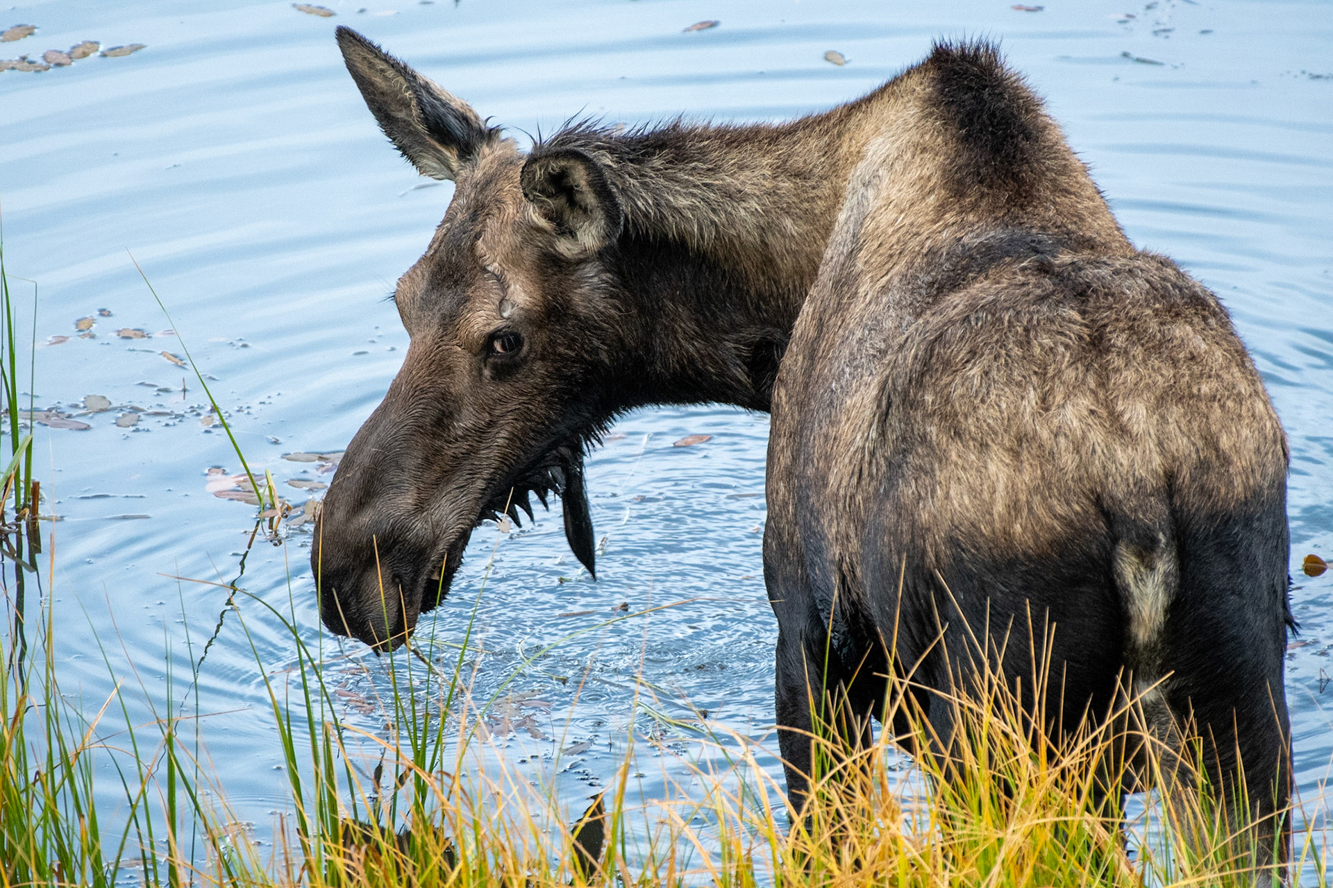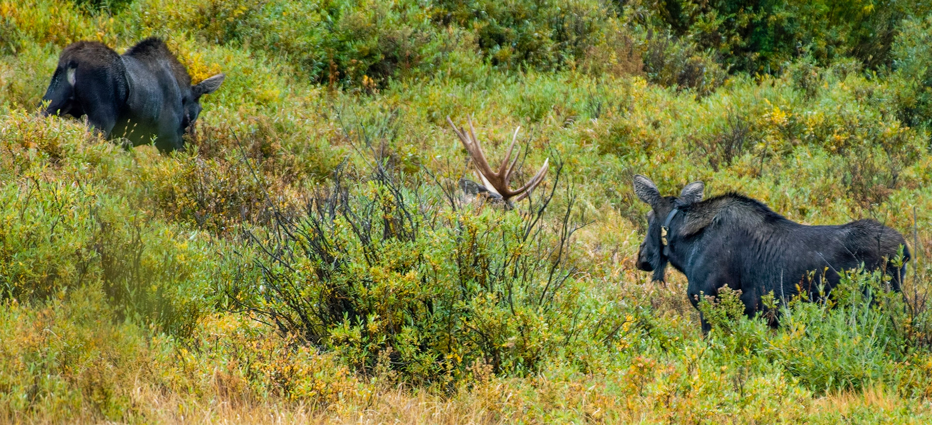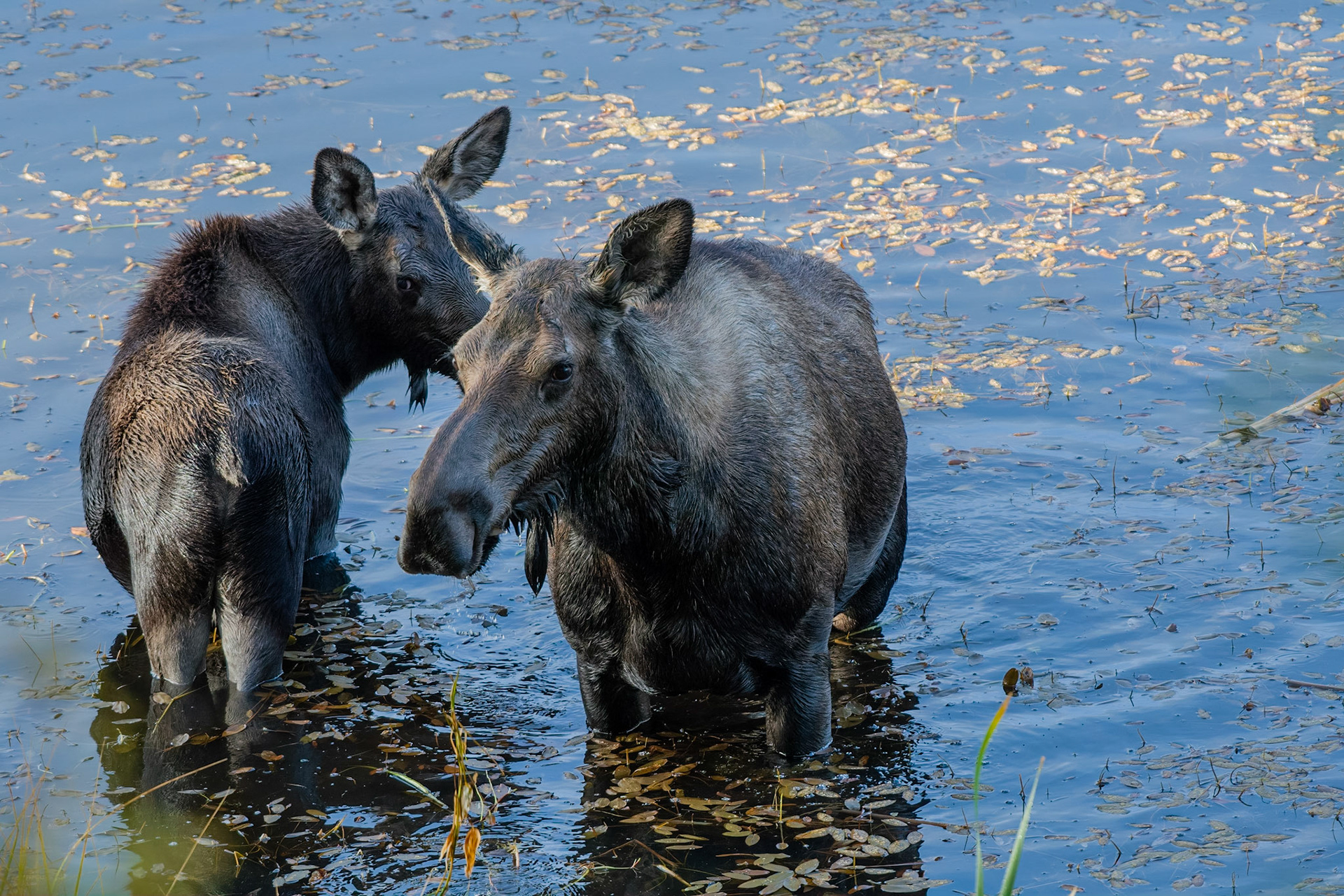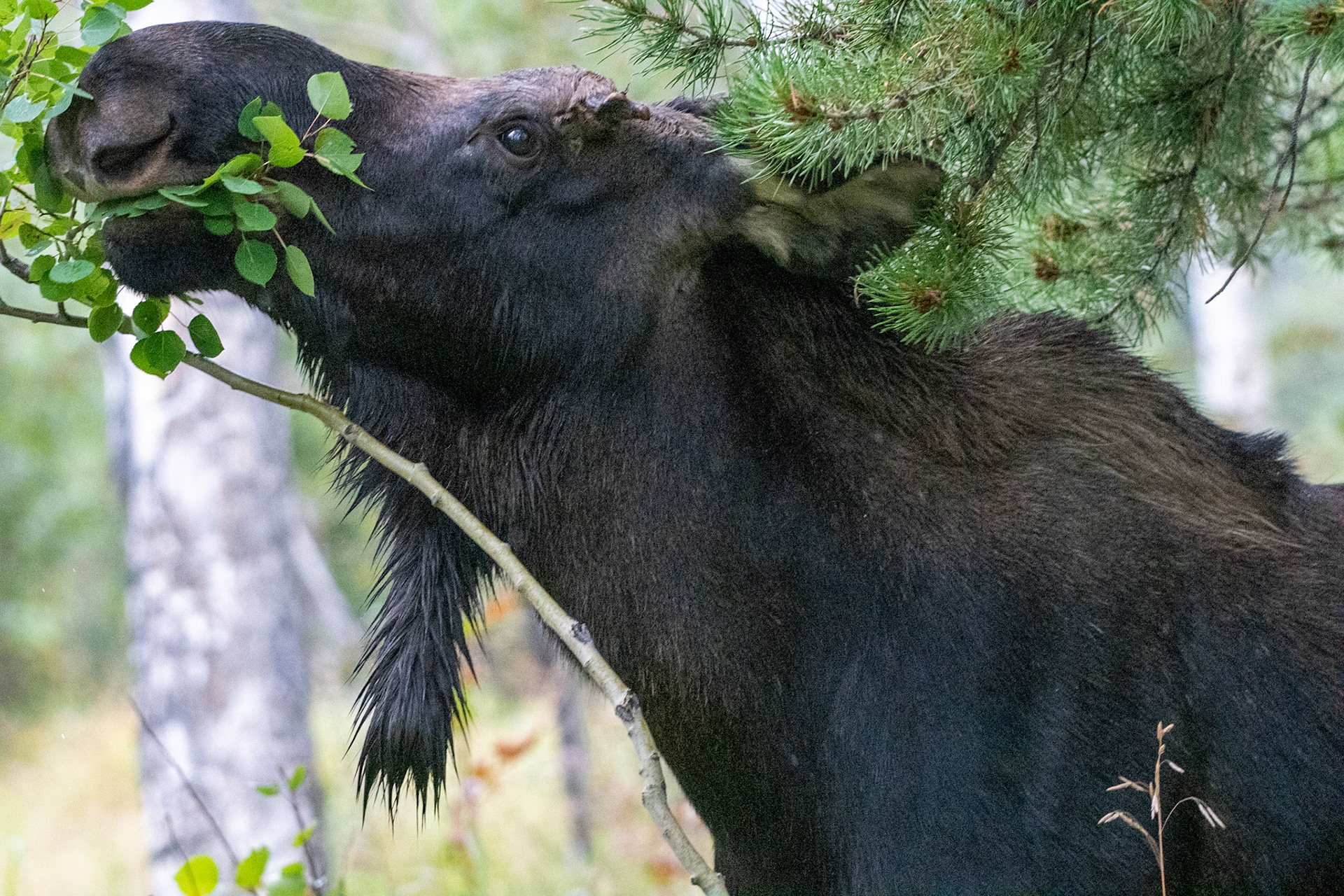 Mama Moose with junior at Sheep Lakes