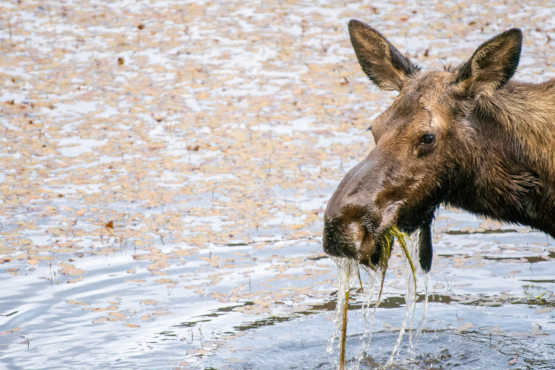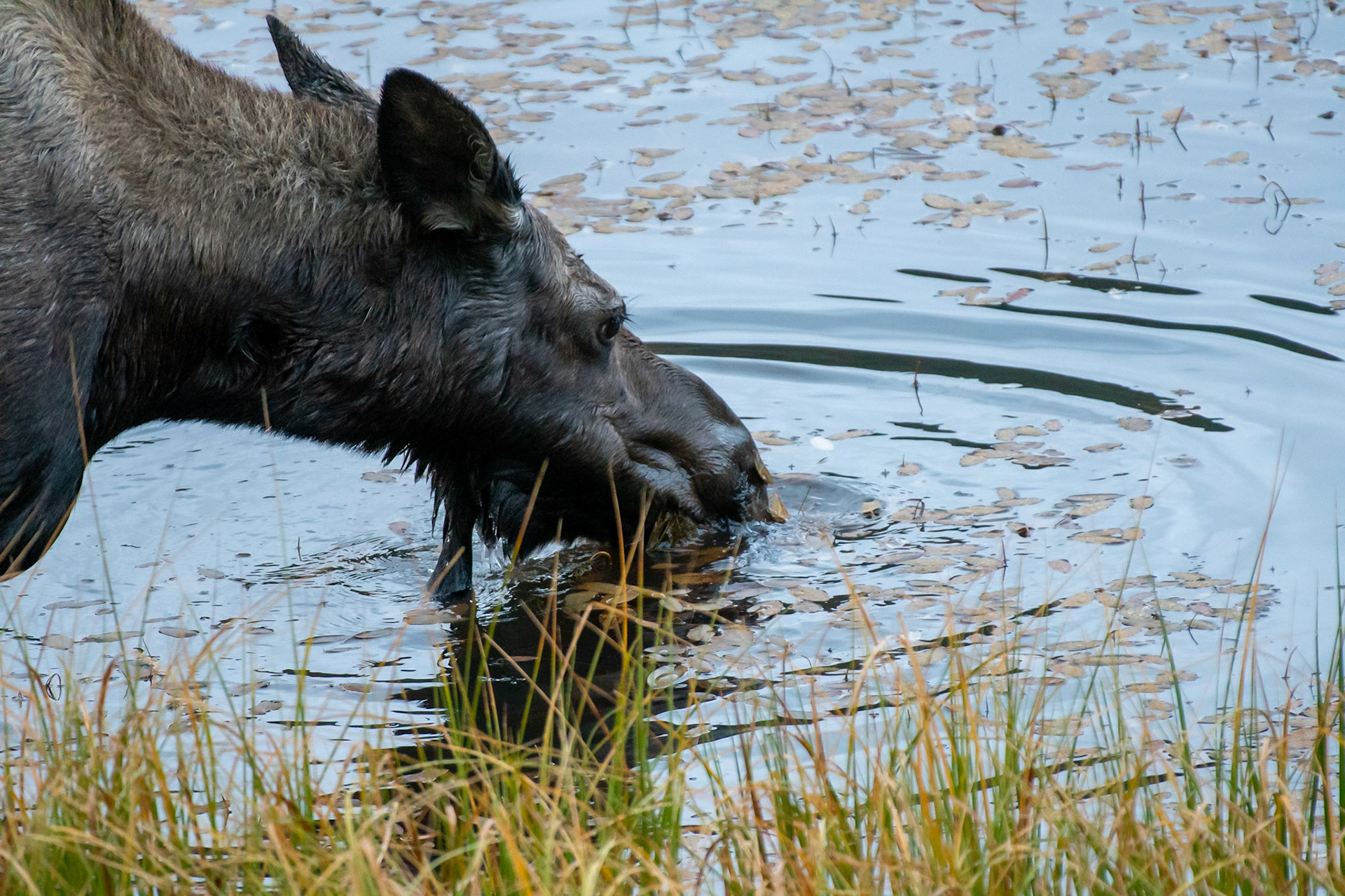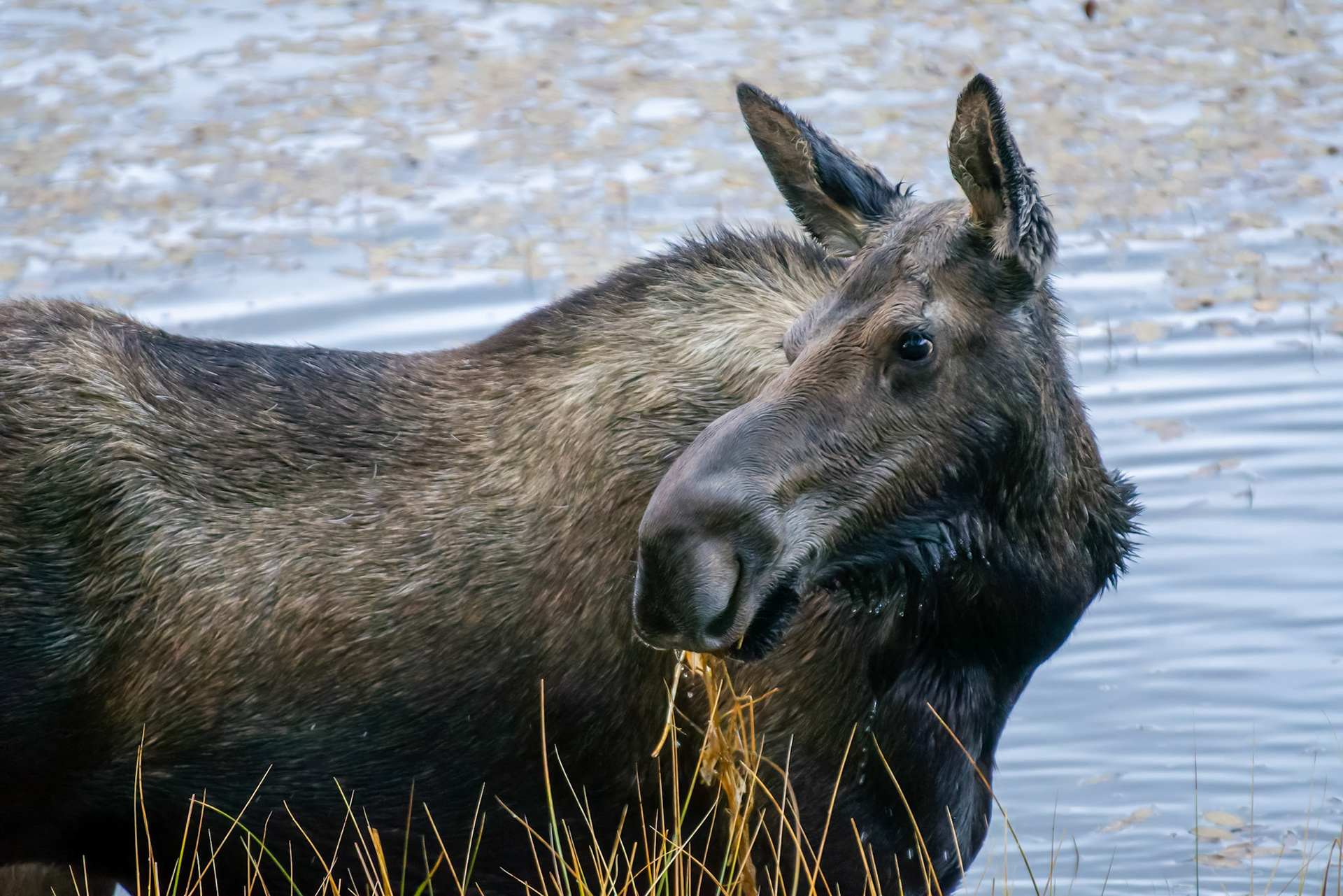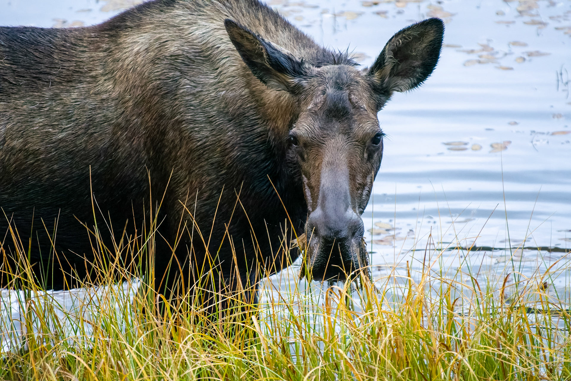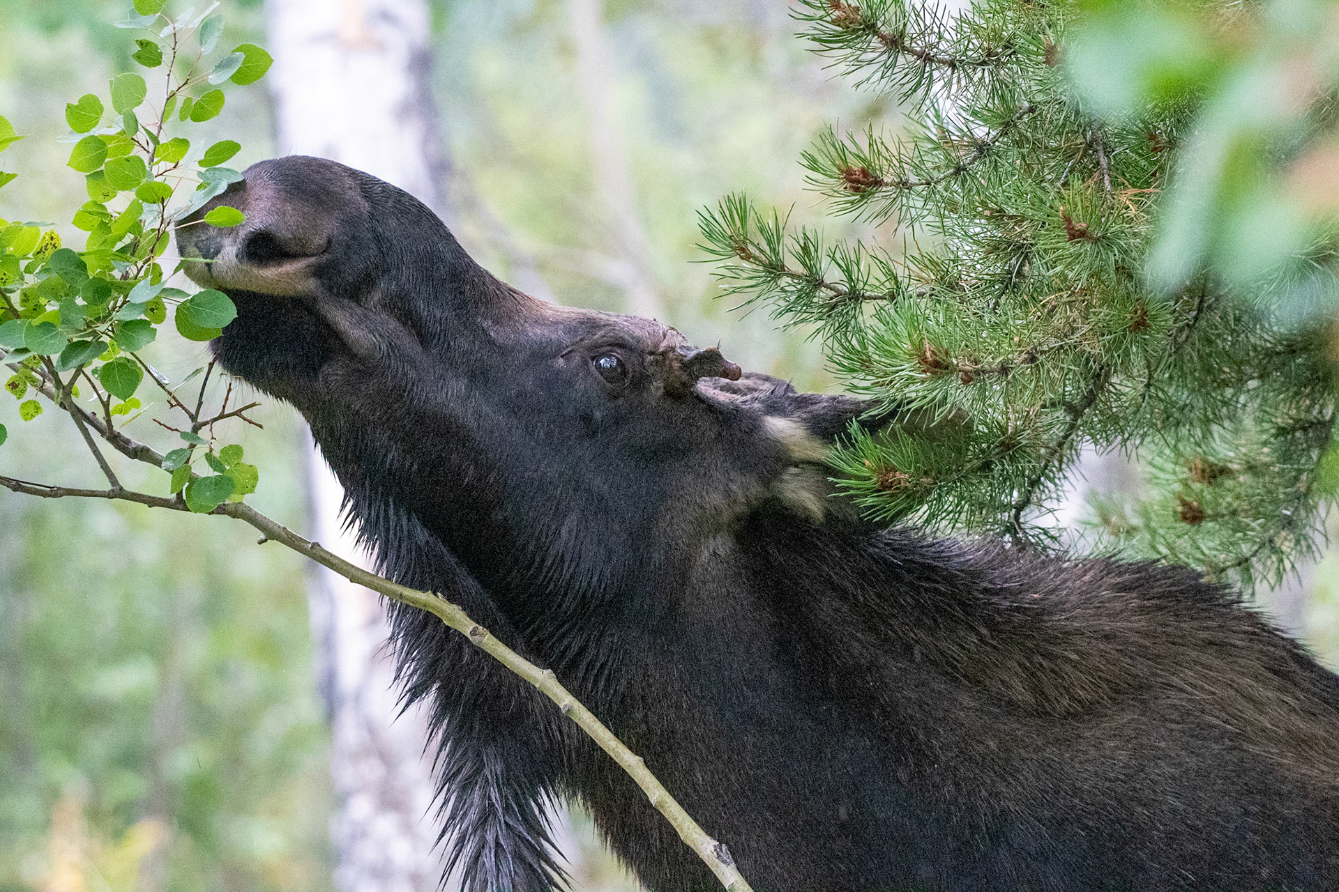 Mama Moose with junior at Sheep Lakes
