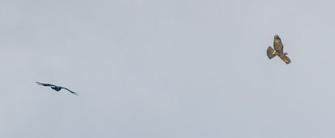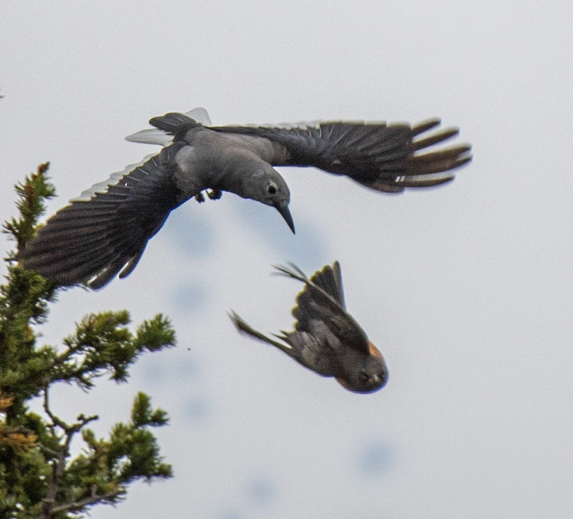 Clark's Nutcracker chasing a Robin