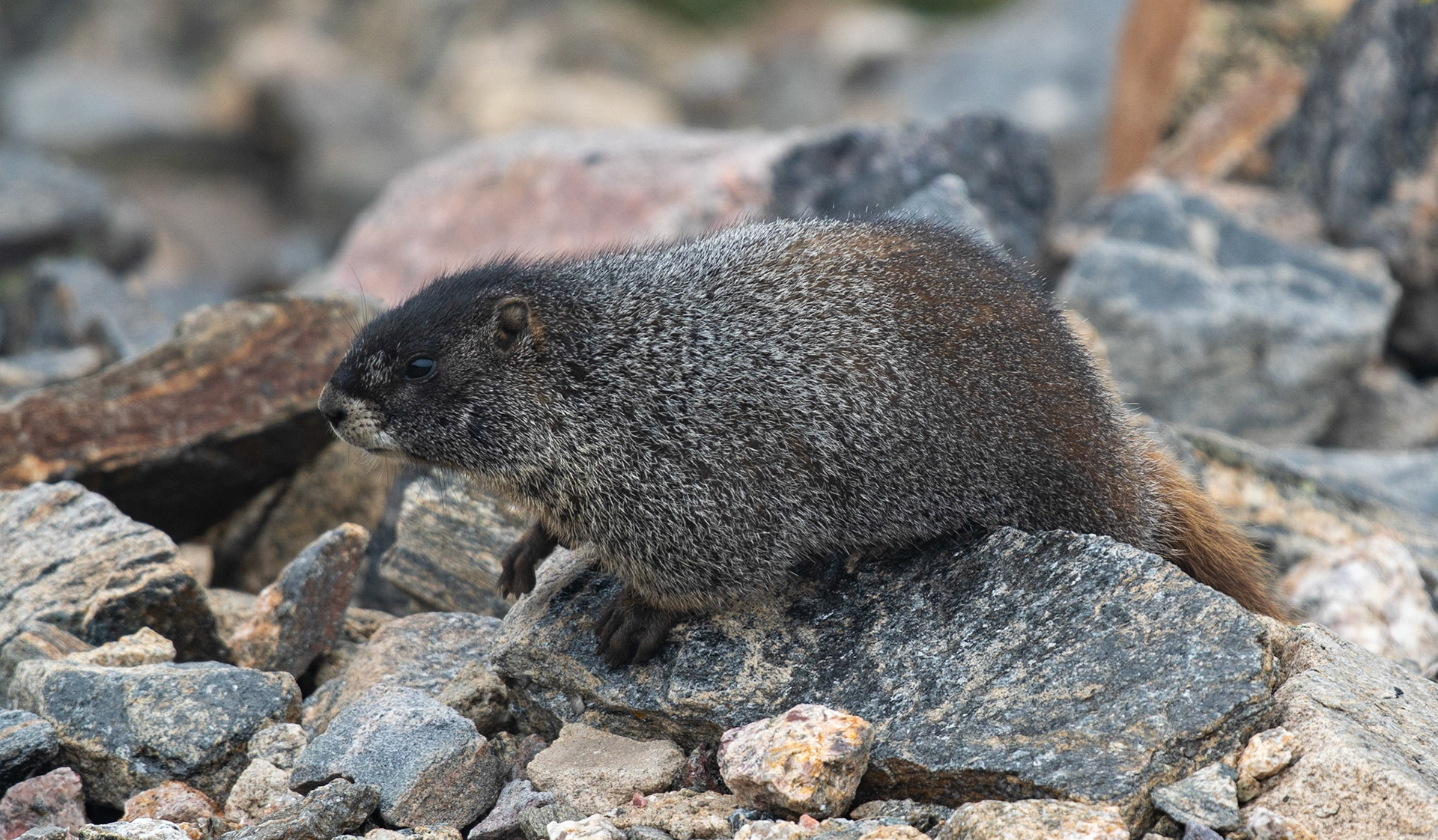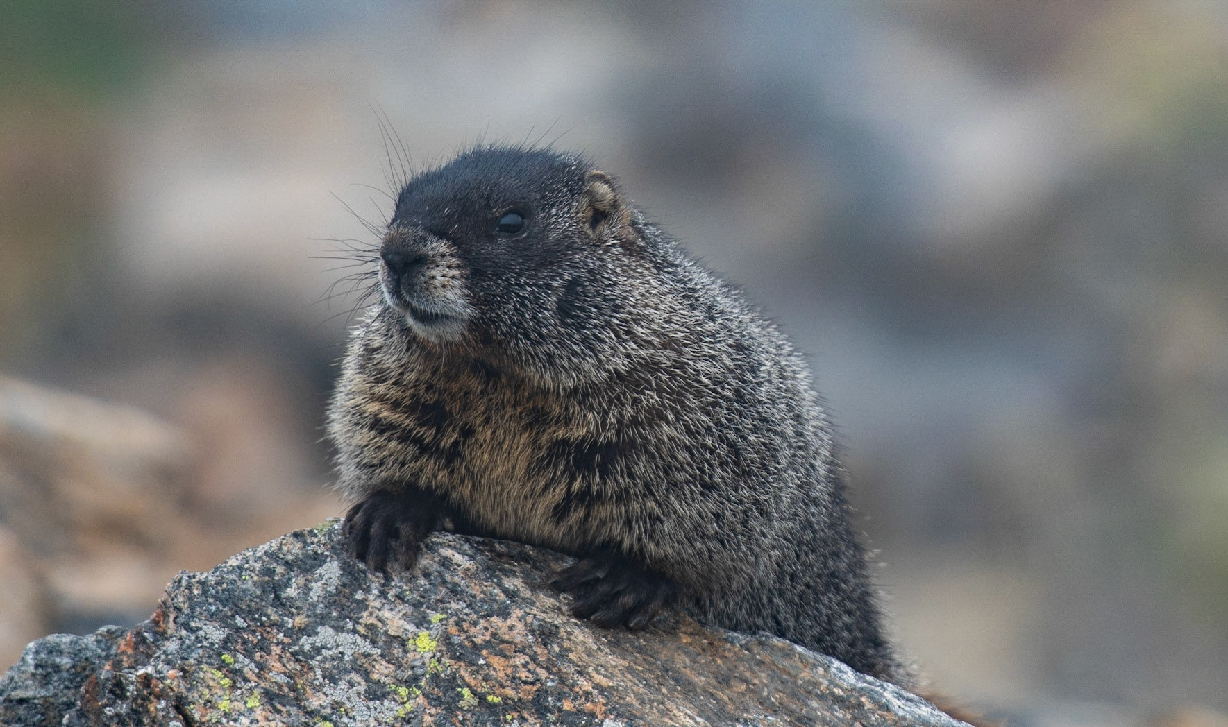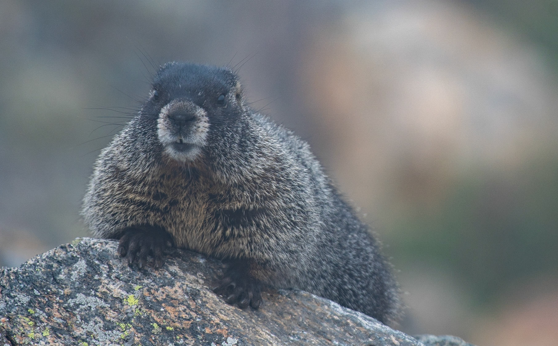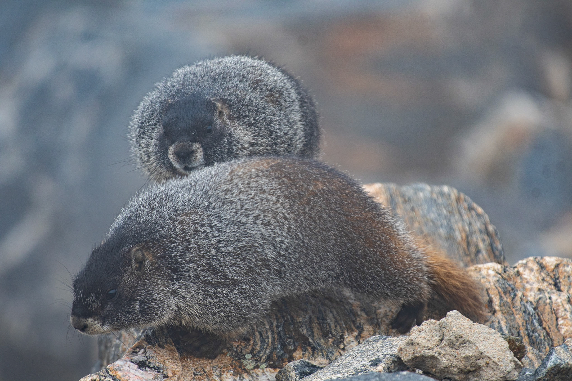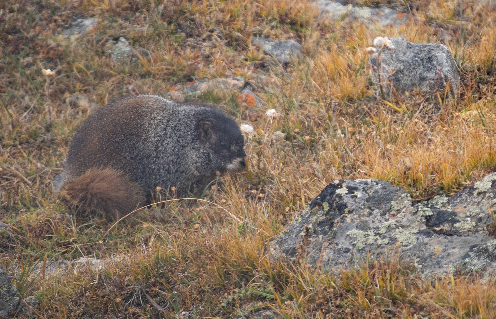 Yellow-bellied Marmot in the fog