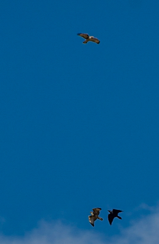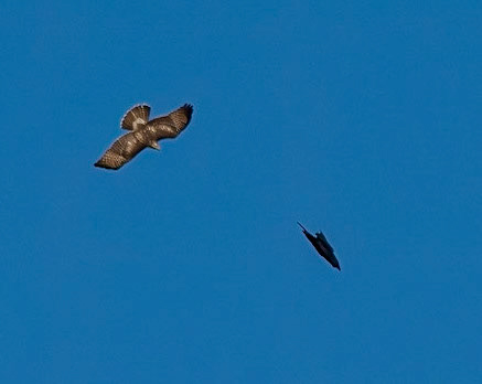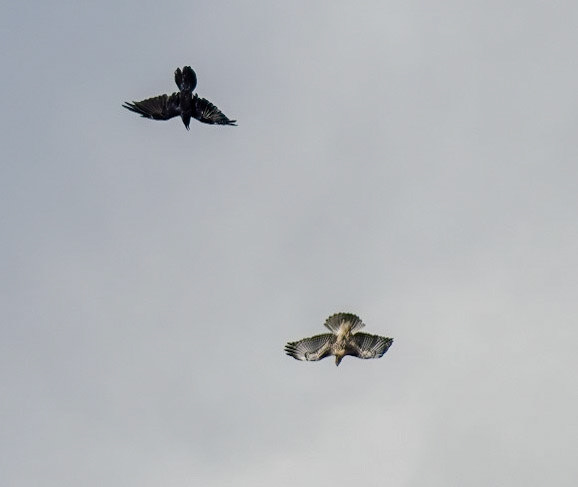 Ferruginous Hawk (Juv) and Common Raven playing